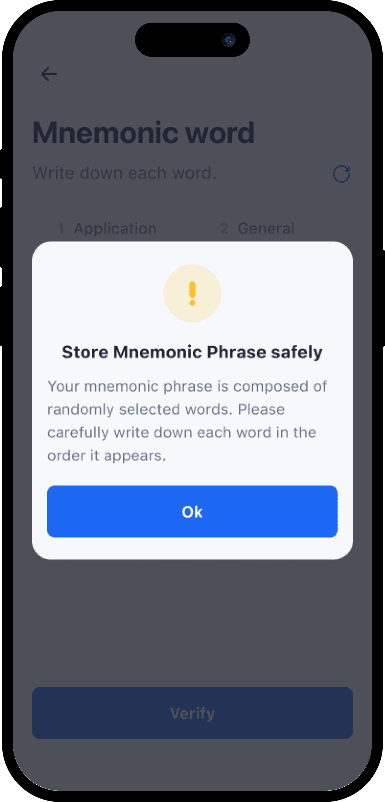 We prototyped a version that the users have to type the 12 mnemonic words by hand to verify so that they are forced to store them safely, which took too much time.
